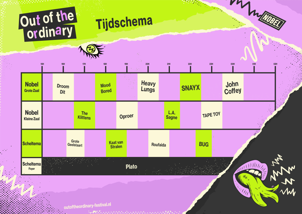 Op zaterdag 31 januari 2026 barst Out Of The Ordinary (OOTO) los in hartje Leiden. De Marktsteeg, Nobel en Scheltema veranderen in één groot avontuur vol gruizige gitaren, dromerige synths, rauwe energie en nieuwe ontmoetingen.